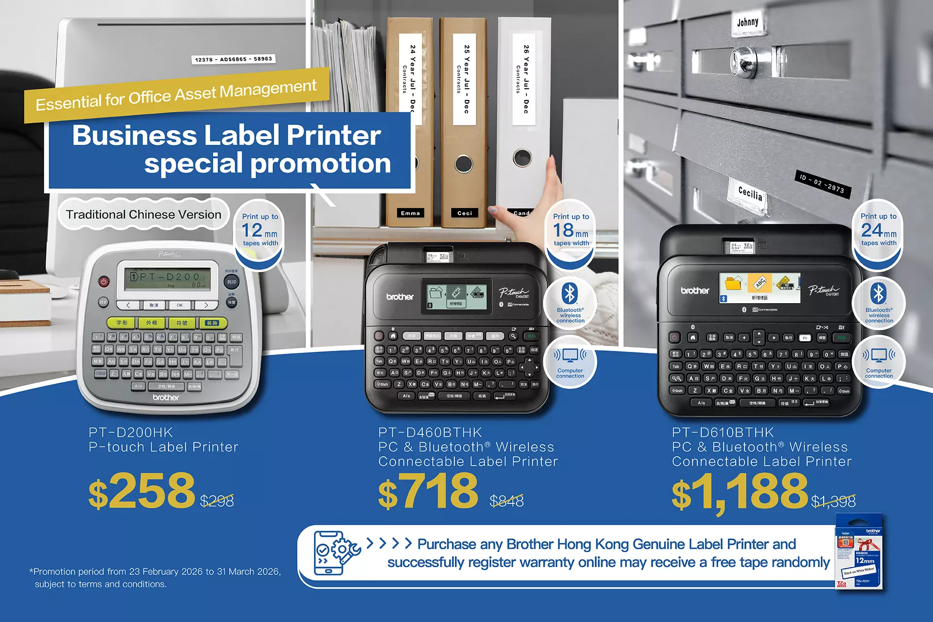Organise any work environment with portable label printers and tamper-resistant tapes