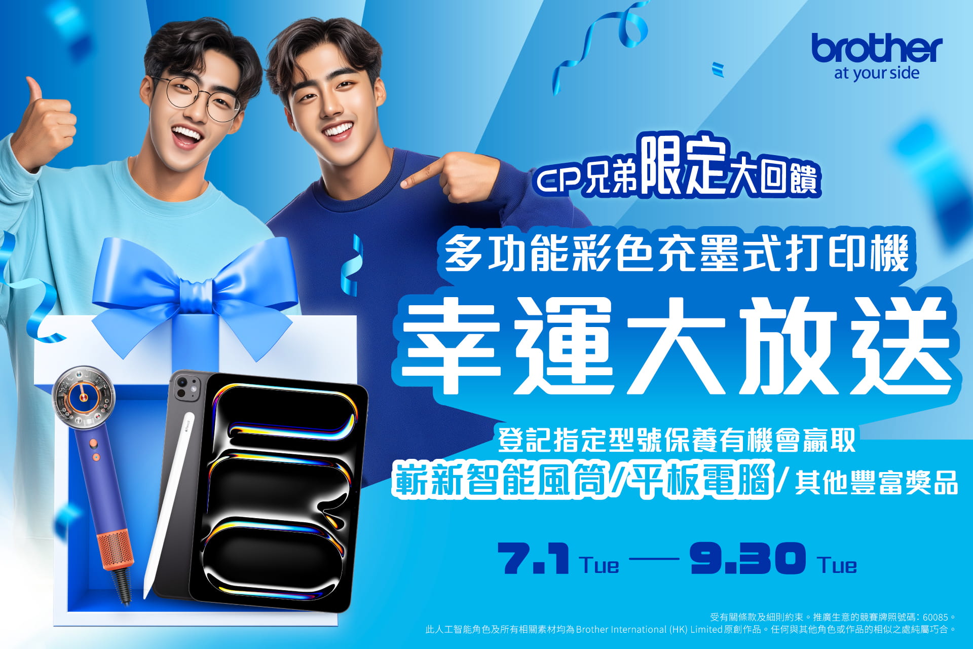 - All Winners will be drawn on 3rd October 2025, and announced on 10th October 2025, on Brother HK's official Facebook page and published in Sing Tao Daily and The Standard.