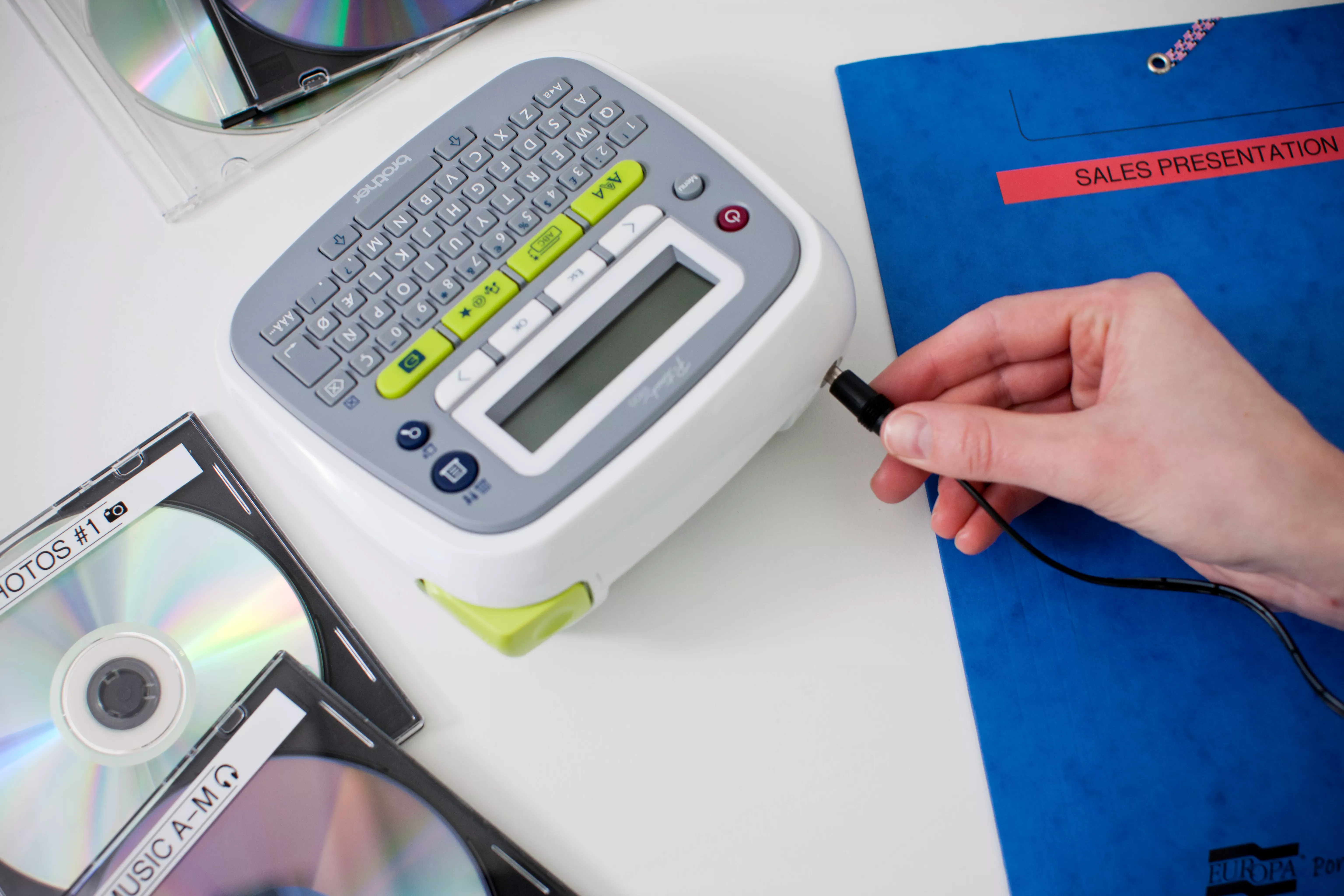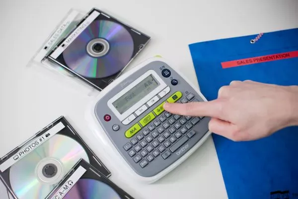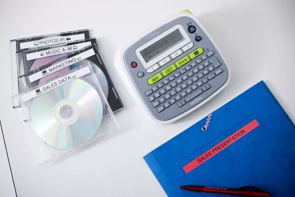 PT-D200HK label printer is so compact that it can be shared around the office.