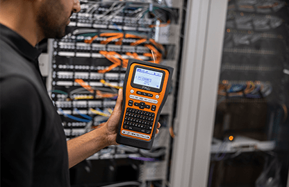 Large backlit graphic LCD enables industrial labelling even in dimly lighted job sites.