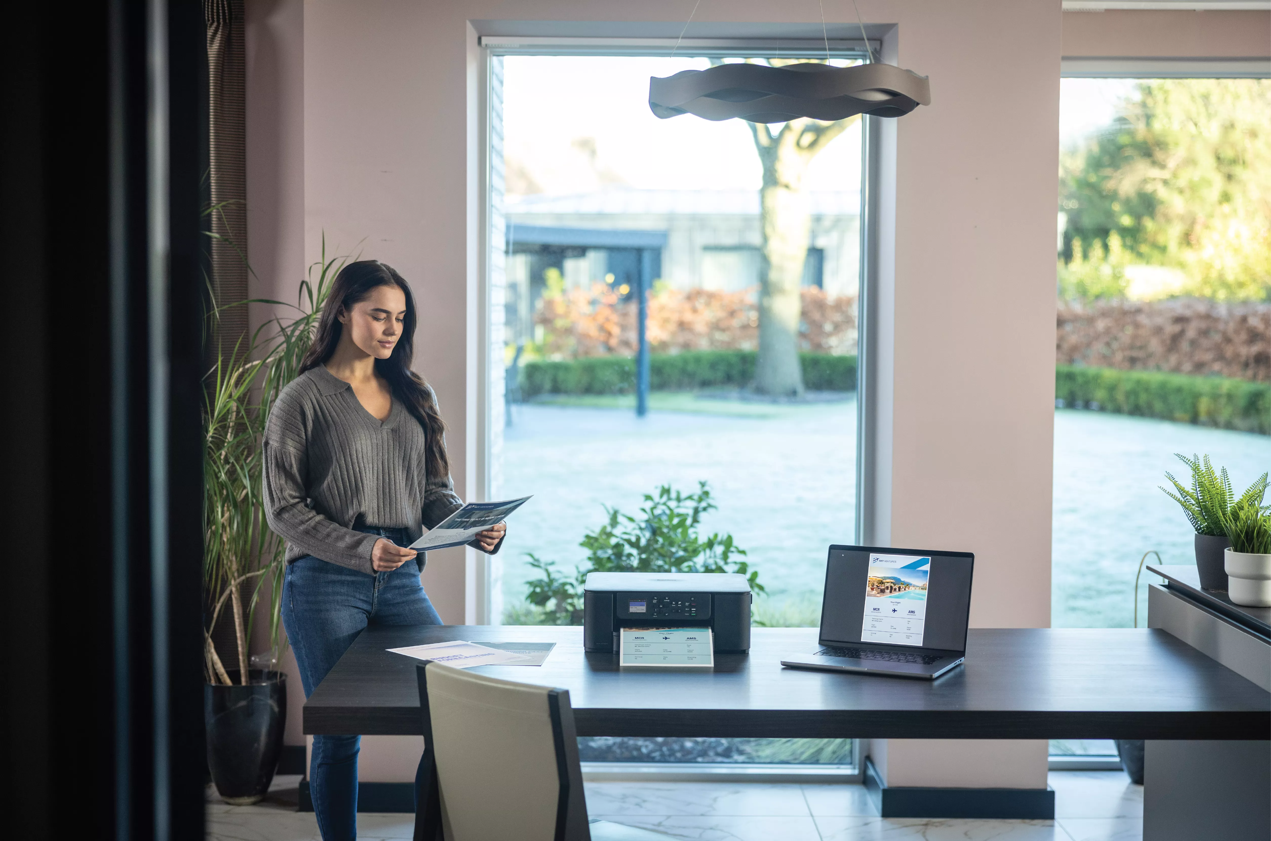 DCP-J1310DW features a sleek, compact design that reduces material use, cuts manufacturing waste, thus lowering our carbon footprint. Sustainability is the foundation of our innovation.
