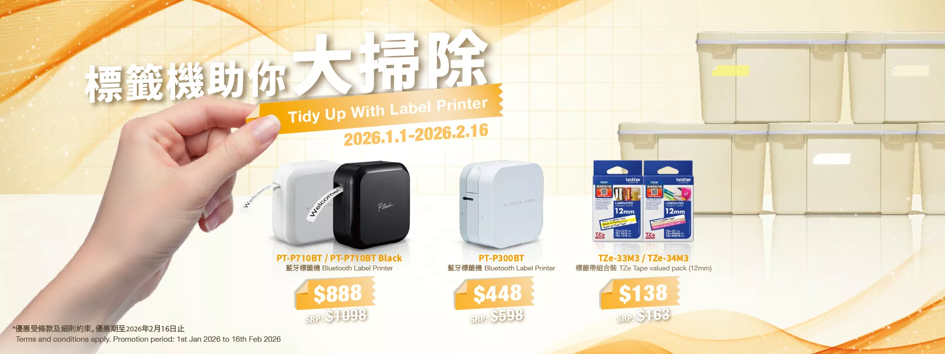 You can enjoy discount on purchasing designated selected label printer and TZe tapes.