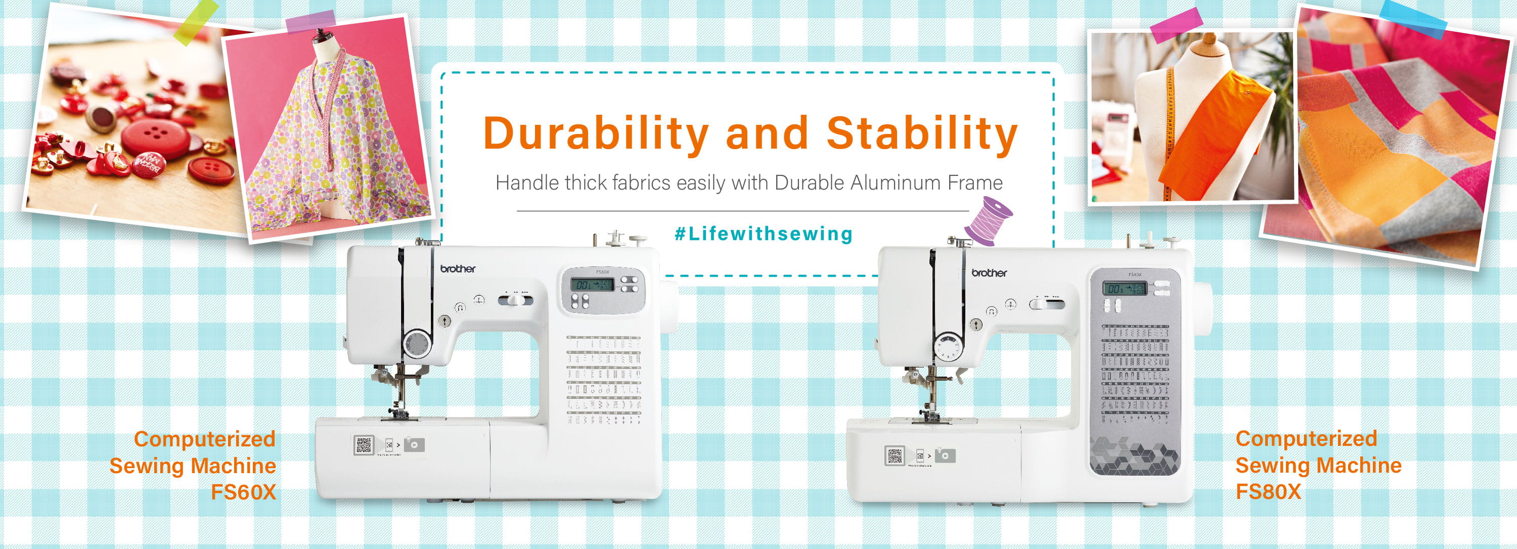 60 built-in stitches and 7 auto-size buttonholes for FS60X; 80 built-in stitches including 8 auto-size buttonholes for FS80X. Users may select your stitch on the machine body.