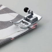 For utility stitches, especially useful to promote perfect feed on thick fabrics. This zigzag foot is equipped with a feature that keeps the foot level when sewing thick seams, or at the beginning of stitching. Suitable for use with 7 point feed machines.