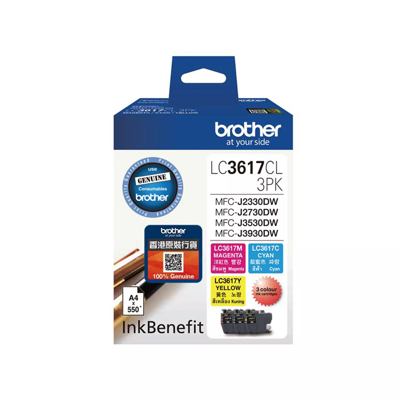 Standard Ink Yield Approx. 550 pages - Color Value Pack (Quoted yields are extrapolated based on brother original methodology using Test Patterns ISO/IEC 24711)
