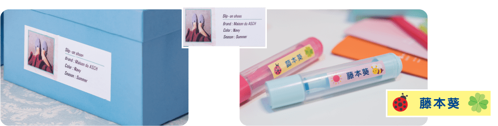 Original label with colorful text and photos makes the storage and name label more impressive.