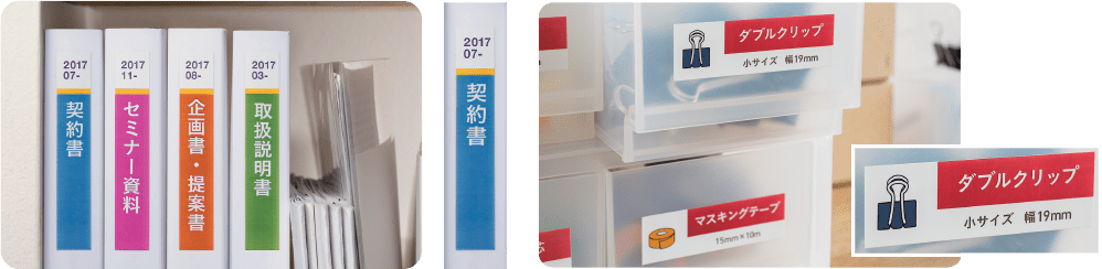 It is small enough to be placed on a desk or shelf. The P-touch Color series has a label size of up to 50 mm. The label application is much broader than before.
