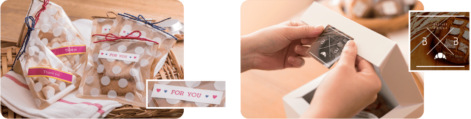 Labels with hand-made photographs and color illustrations make gift packaging and shop decoration and interpretation more advanced.