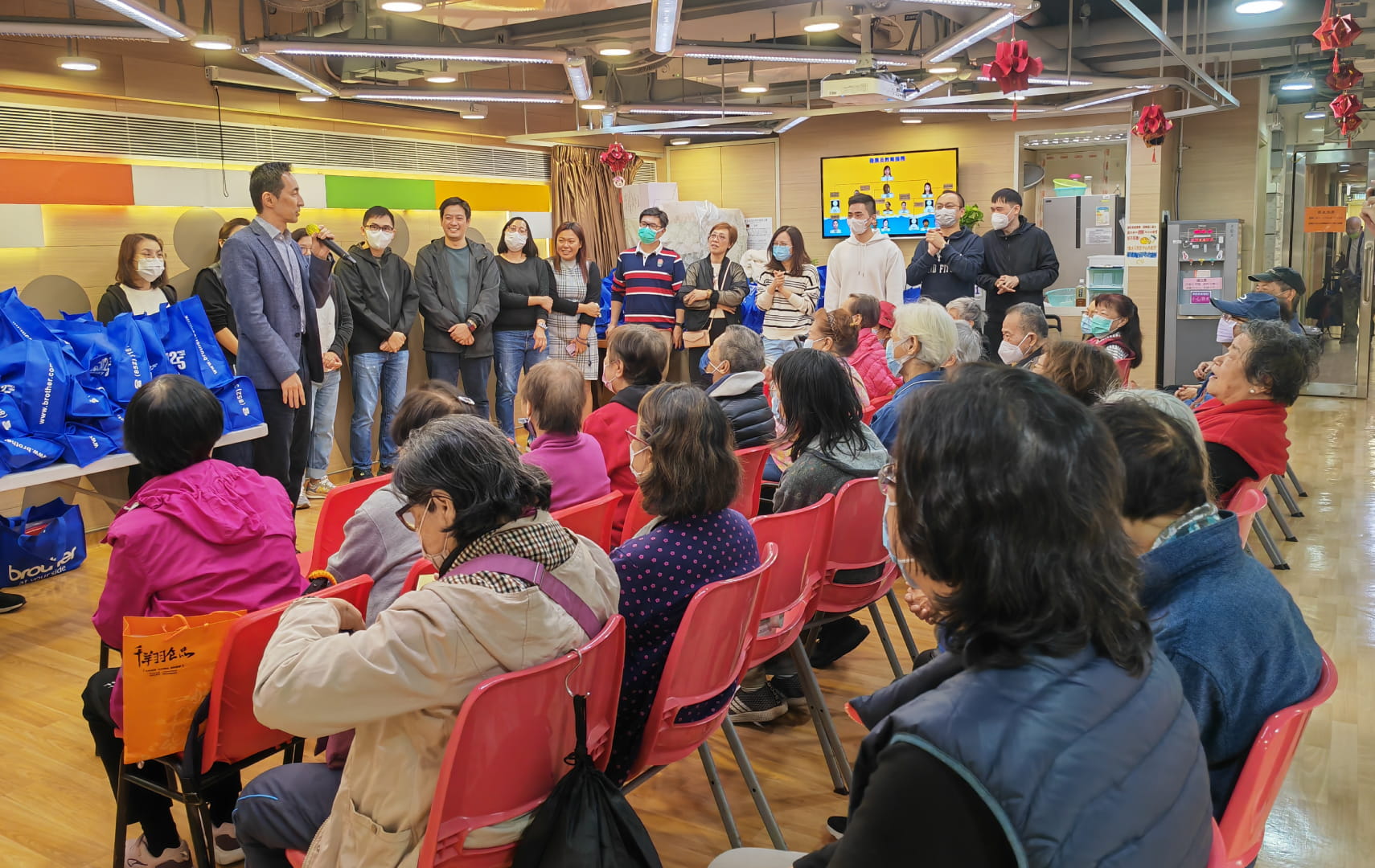 Brother與聖雅各福群會合作舉行「新春送暖大行動」,員工到訪灣仔長者中心及派發了86個福袋,希望為長者們送上關懷和愛。