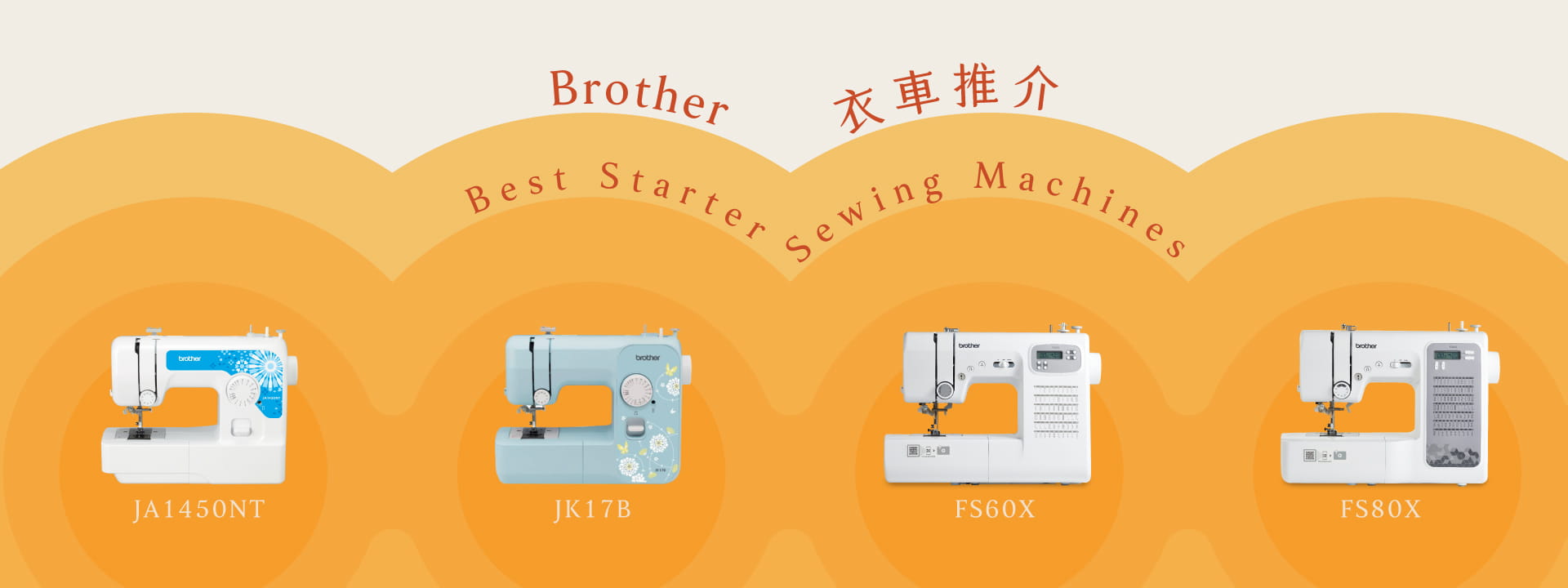 Brother的JA1450NT、JK17B、FS60X及FS80X專為初學者設計: