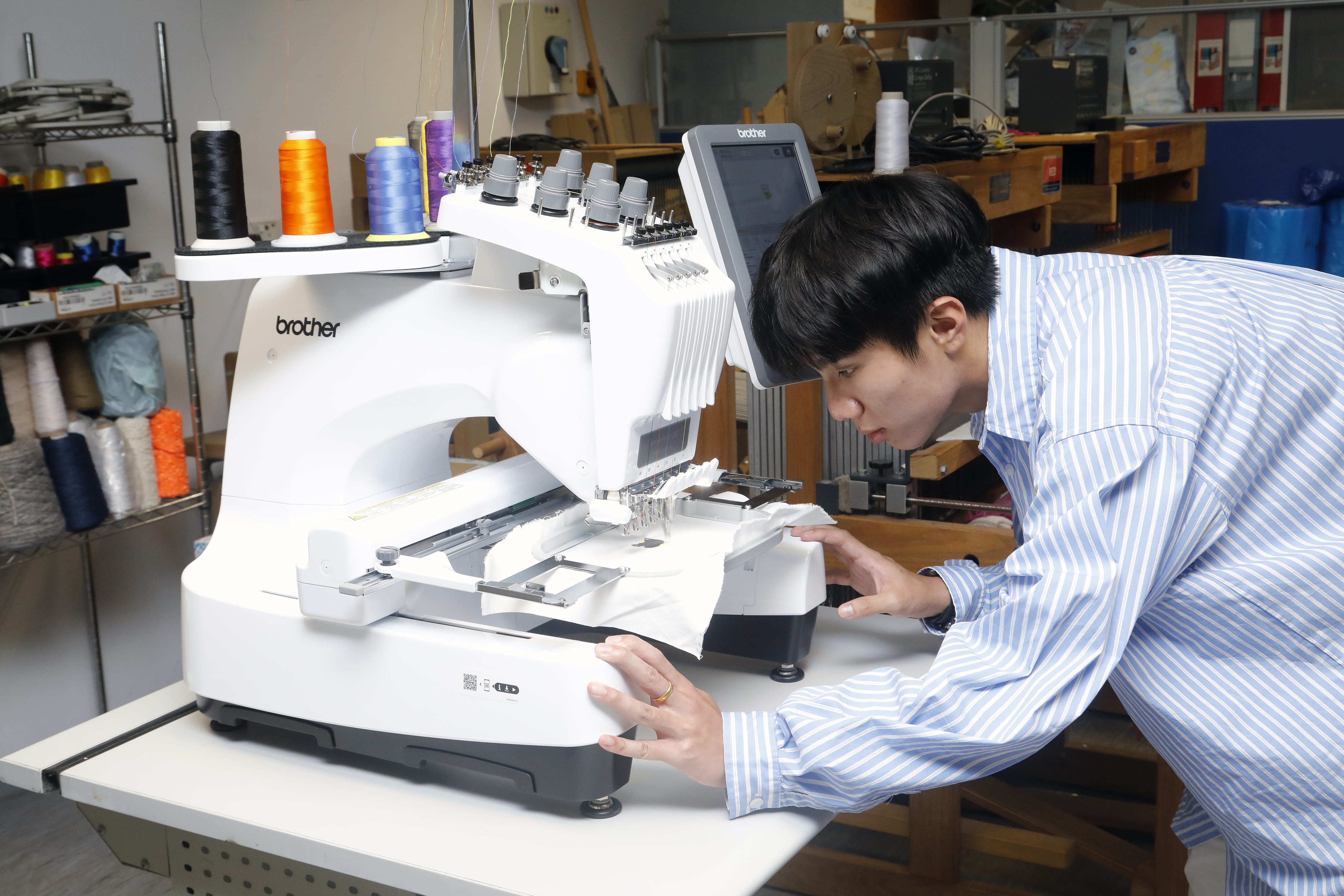 HKDI一直是本地設計人才的搖籃,時裝及形象設計學系講師陳明彝(Roxana)透露,除了平日向學生傳授設計學原理和紡織品設計等知識,為協助他們找尋更多機會,還會與業界企業交流:「當時,我在以牛仔時裝和本地文化為主題的牛仔節,見識過Brother PR680W商用自動刺繡機的高科技性能,心想我的一年級學生在學習過手繡技巧後,也要嘗試操作刺繡機器,能否讓他們接觸業界的最新科技產品,為未來投身社會打好基礎?遂與Brother商討把該刺繡機引進院校。」