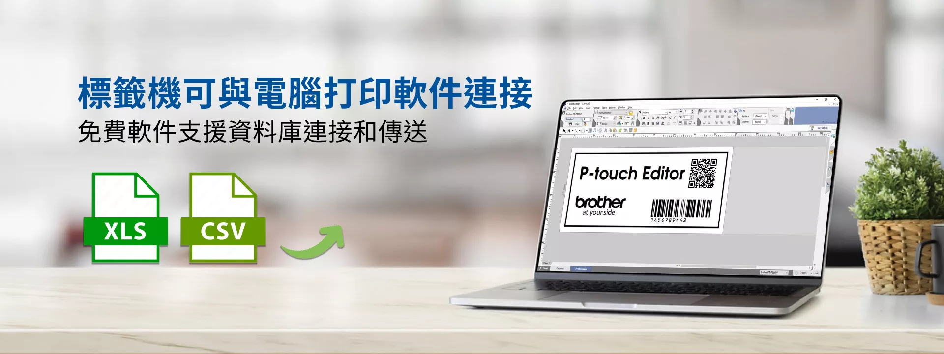 P-touch Editor 是一款易於使用的編輯軟體,可用來建立資產標籤,方便您使用 Microsoft Excel 試算表、CSV 檔案或其他資料庫格式的資料來列印和編輯標籤。