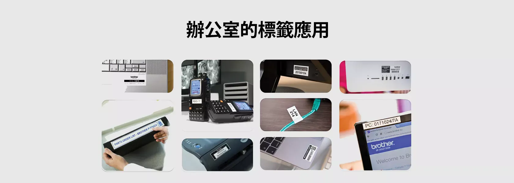 在辦公桌或需貼標籤的地方,隨時隨地製作客製化標籤,Brother P-touch 系列標籤機可製作任何有設備管理需求的耐用標籤。