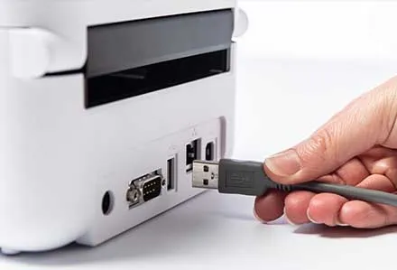此機內置USB插口,可連接條碼閱讀器或測量秤,方便讀取條碼以創建打印信息,使用預定模板將您的信息打印到標籤上。