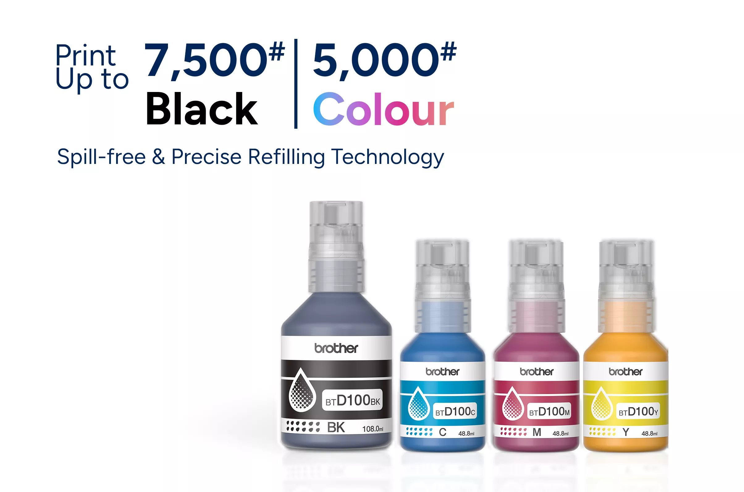 憑藉高達 7,500/5,000 頁(黑色/彩色)的高打印量,實現更多目標。減少了墨水更換頻率,節省了時間和成本,同時確保家庭和企業用戶獲得一致的高品質列印。