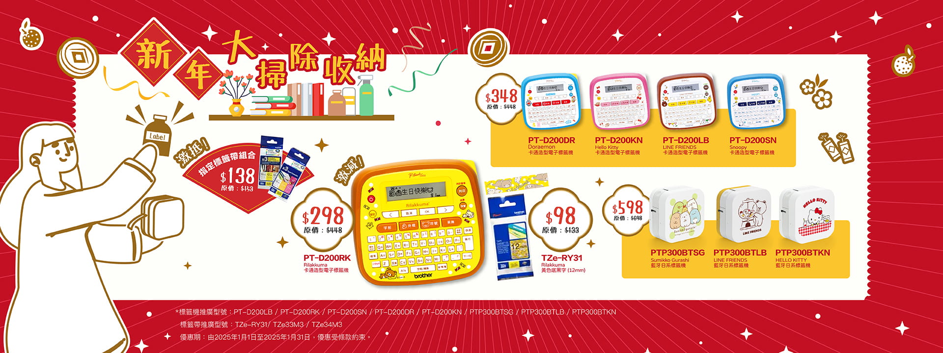 - 此優惠只限在Brother eShop購買的指定型號標籤機及標籤帶。