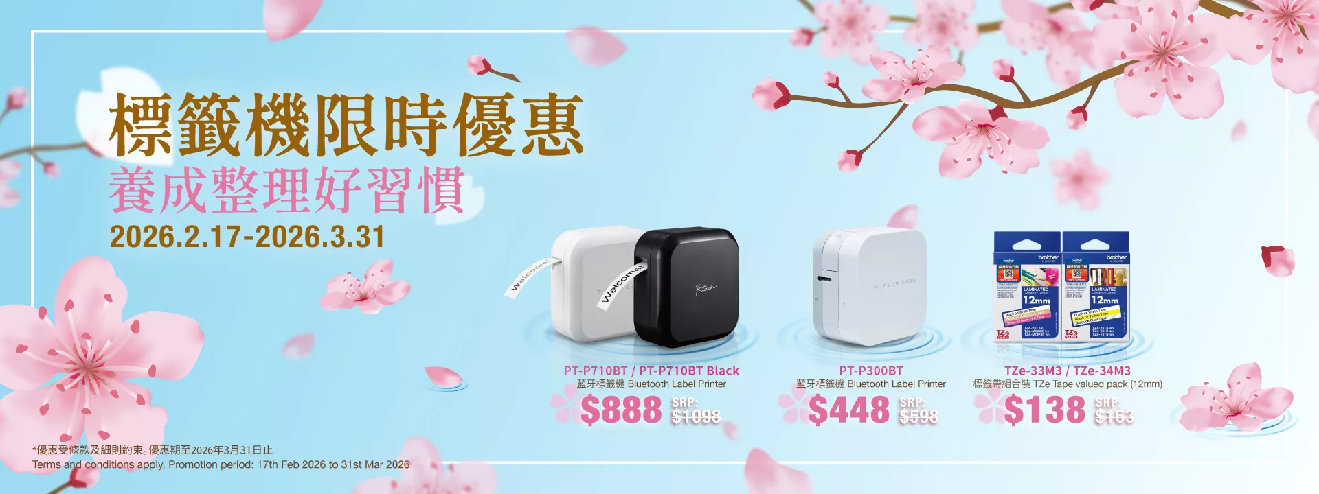 - 此優惠只限在Brother eShop購買的指定型號標籤機及標籤帶。