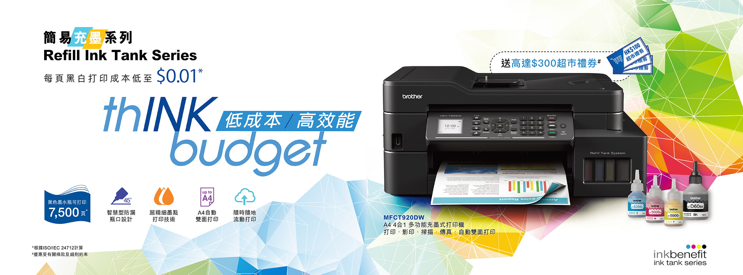 - 凡購買DCPT820DW、MFCT920DW,可獲贈$300超市現金券