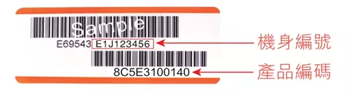 - 剪下包裝盒上完整的機身條碼貼紙 (如附圖) – 必須具有機身編號及產品編碼