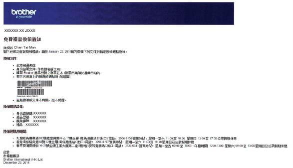 1. 成功登記的客戶,Brother將於收到客戶資料後2個月內以郵寄方式送出換領通知信。
