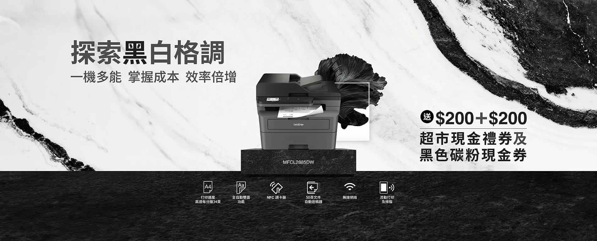 - 有關推廣詳情及條款可參照 https://www.brother.com.hk/zh-hk/promotions/mono-laser-printer-pro
