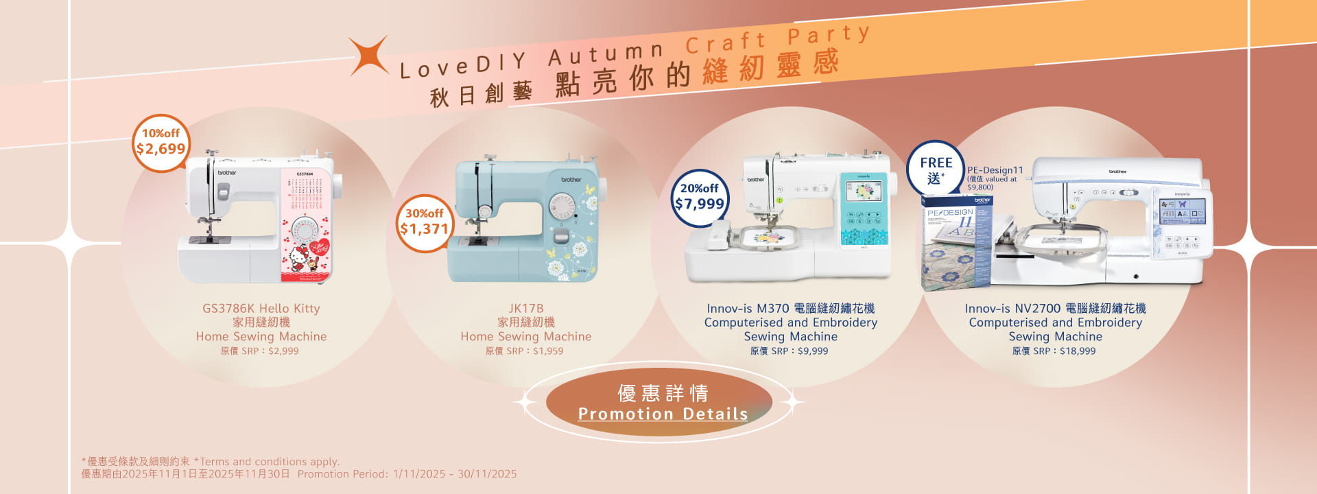 - 有關推廣詳情及條款可參照https://www.brother.com.hk/zh-hk/promotions/sewingpromotion2025
