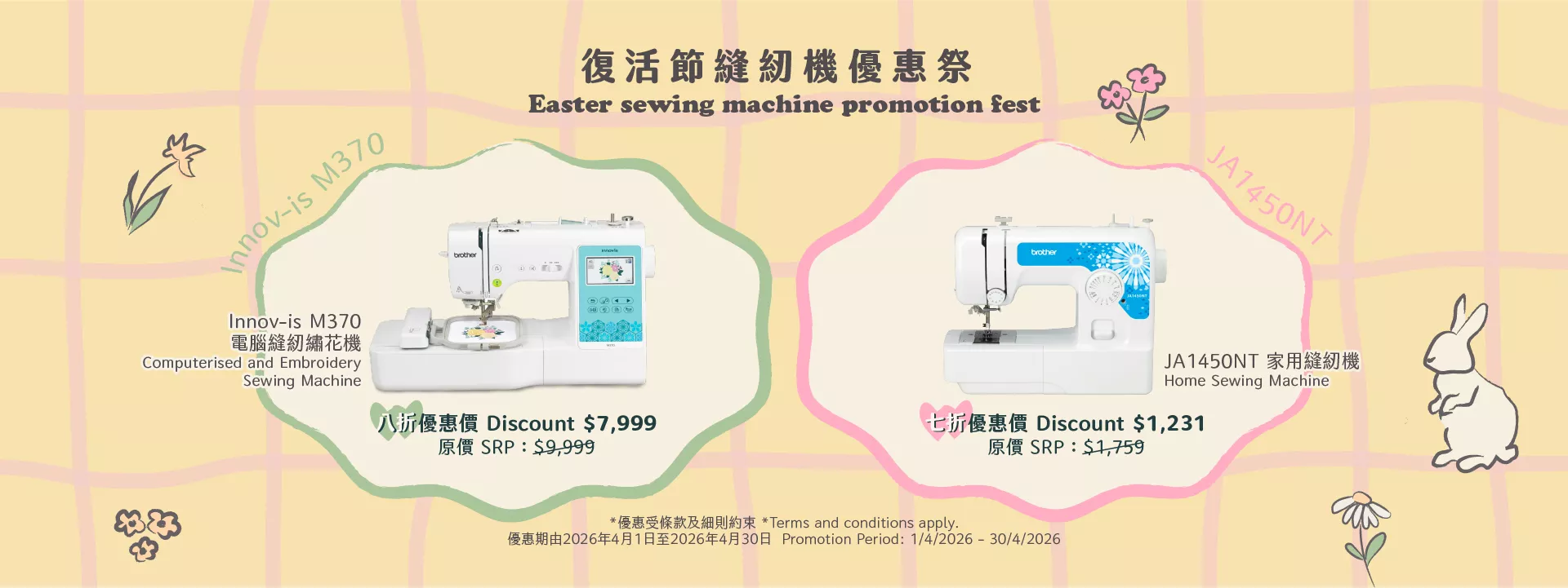 - 有關推廣詳情及條款可參照 https://www.brother.com.hk/zh-hk/promotions/sewingpromotion2026
