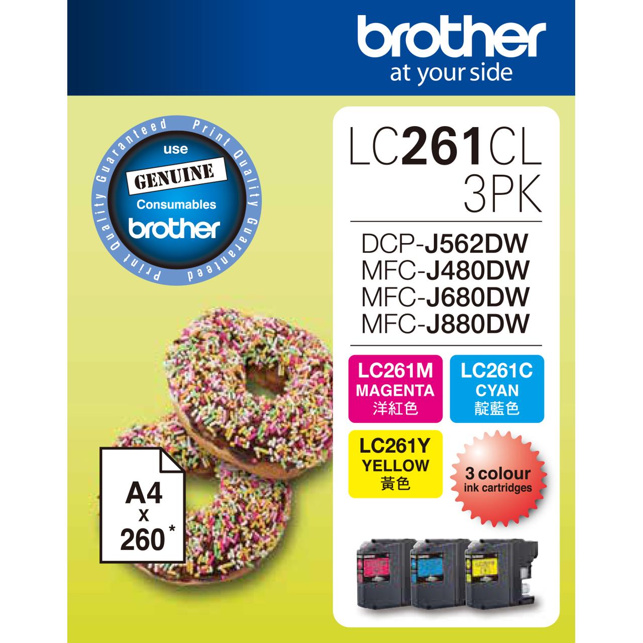 標準墨盒打印量約 260頁 - 彩色墨盒套裝 (根據 Brother採用ISO/IEC 24711測試計算)