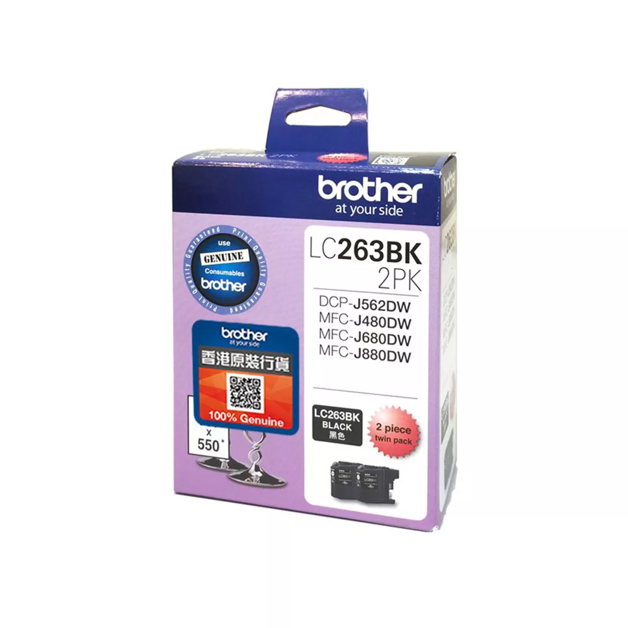 高容量墨盒打印量約 550頁 - 2個裝 (根據 Brother採用ISO/IEC 24711測試計算)